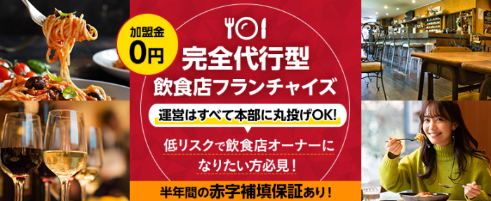 飲食店経営の知識や時間がない方でもリスクを抑えて飲食店オーナーになれる、完全運営代行型のフランチャイズサービスです。 約300万円からスタートでき、半年間の赤字保証付きです。 オーナーは月次報告を受けるだけで運営を全て本部に任せられるので、手間のかからない事業の柱や投資、副業としても魅力的なサービス…