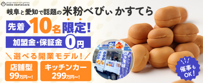 bebe castelaraでは、健康志向に特化したグルテンフリー米粉のベビーカステラをキッチンカーで販売しています。 他にも低カロリーな米油やイソフラボン豆乳を使用するなど、女性にも嬉しいベビーカステラとなっております。 作業は、生地を仕込み焼いて袋に入れるだけなので、ワンオペ営業が可能で人件費…