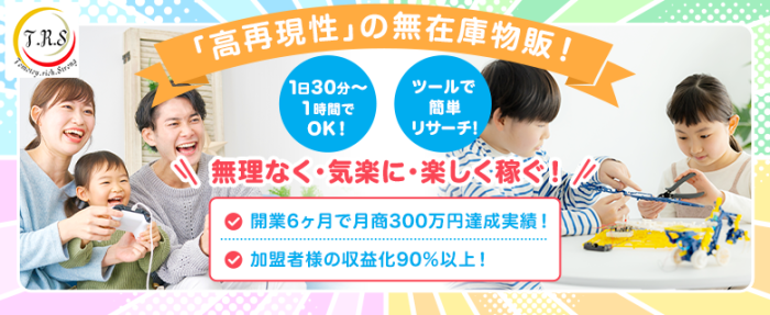 「TRS(トモトイ・リッチストロング)」は、無在庫型の『再現性に特化した』ネット物販ビジネスです。 リスクが少なく、高需要なジャンルで販売事業を始められます。 ネットショップの需要は、大人や子ども問わず増加傾向です。 年間を通して大きなニーズが続く無在庫物販に特化して、安定的に収益を確保! 「T…
