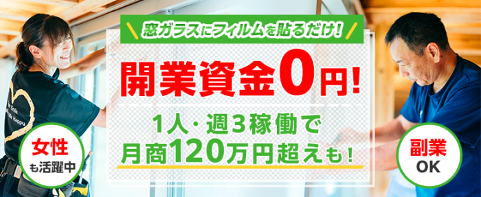 加盟金無し、ロイヤリティ無し、地域制限無しの条件で独立開業可能!