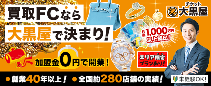 大黒屋は創業40年以上、全国に約280店舗を展開し、様々な商品を取り扱う販売買取リユース業です! 取り扱う商品はブランド品・貴金属・時計・チケット・外貨等多岐に渡り、質屋業も展開可能! リユースは今テレビやニュースでも大きく取り上げられ、非常に注目を集めています! 景気や流行に左右されにくい堅実さが…