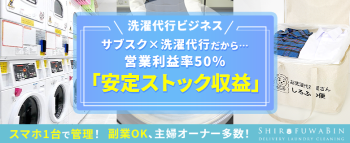 洗濯代行しろふわ便は、東京都内を中心に展開する「宅配洗濯代行サービス」です。 家庭や店舗から出る水洗い可能なお洗濯物を「洗濯・乾燥・たたみ・集配」まで一貫して行います。 すべての業務は自社で完結するため、利益率が高い事業です。 クリーニングとは異なり、洗濯物の仕分けは不要でバッグ単位で完結するため管…