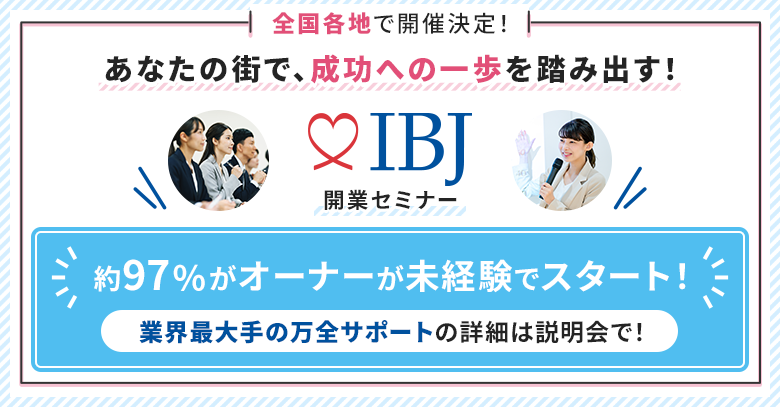 ぜひ一度、「IBJ」の開業説明会へお越しください。お申し込みは『説明会日程』から!