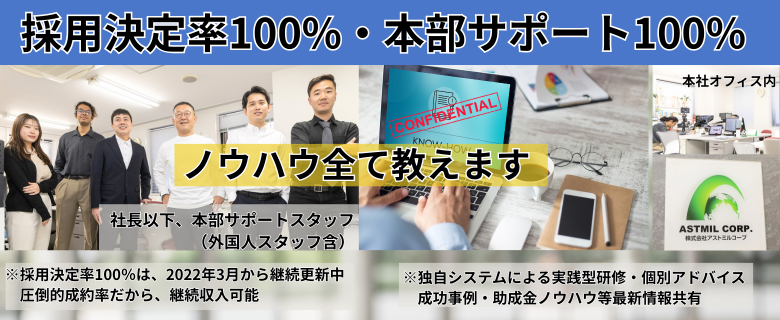 更に、本部の採用決定率は、100%(2025年10月現在。2022年3月から毎月更新中)ですので、安定的な収入が見込めるということです。