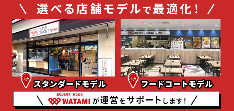 「オリーブチキンカフェ」では、2つのストアモデルをご用意しています。