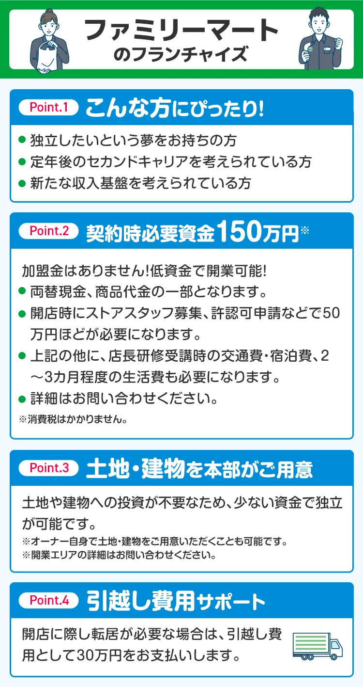 フランチャイズ開業基本情報 | ファミリーマート ひとり加盟制度