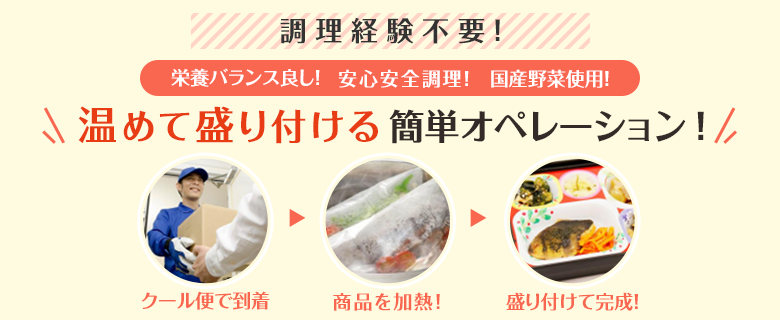 温めて、容器に盛り付けるだけで完成するので、飲食未経験の方でも簡単に調理可能!