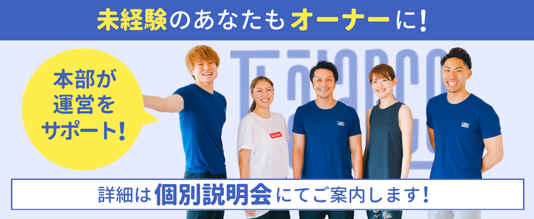オーナー兼トレーナーとして、独立開業を検討されている方も大歓迎です!