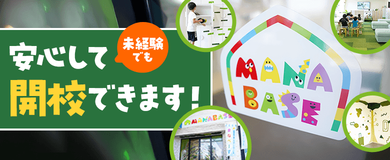 『MANABASE(まなべーす)』では、大手FC本部に見られるような「法人限定」や「初期投資3,000万円~」といった高いハードルを設けていません。