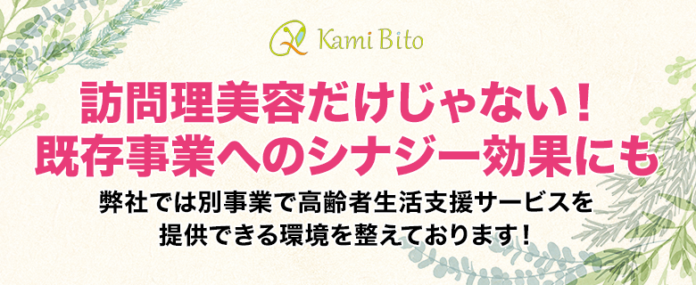 kamibitoでは別事業で高齢者生活支援サービスを提供できるように環境を整えているため訪問理美容サービスから他の様々なサービスに広げる事が出来ます。