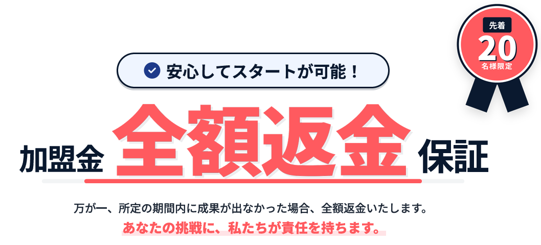 先着20名限定で【加盟金 全額返金保証プラン】も!