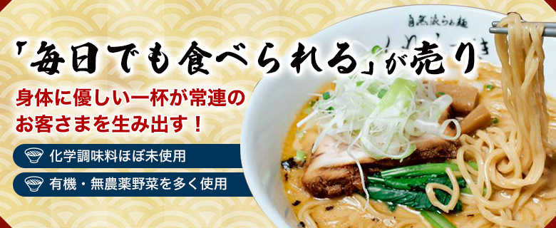 美味しさを求めつつも、身体に良いラーメンの提供を追求。