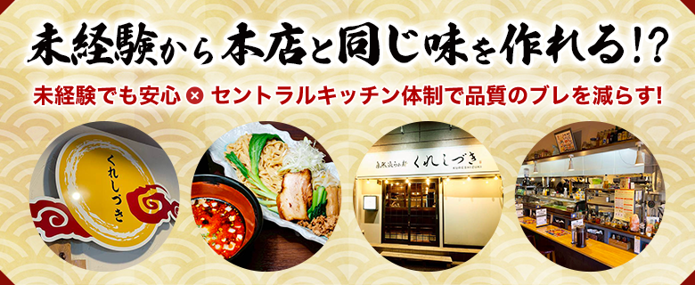「くれしづき」では、スープ・麺・たれ・油など、主要な食材を本部で一括製造。