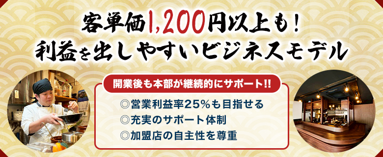 原価率や人件費を抑えつつ、客単価1,200円以上を実現!