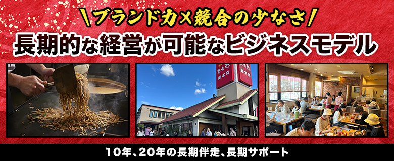 また焼きそば専門でFC展開をしている企業は数える程度なので、競合が圧倒的に少なく、外的要因による変化で売り上げを左右されることはほとんどありません。