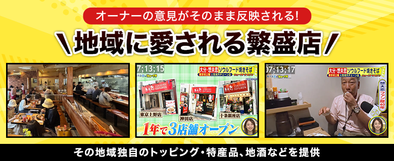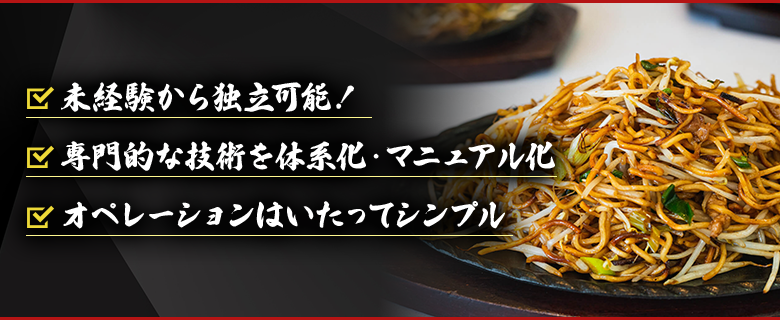 専門的な技術を体系化、マニュアル化しており、誰もが最高の焼きそばの提供を目指すことが出来ます。