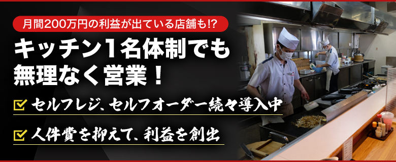 またセルフレジやセルフオーダーの導入も積極的に行っているため人件費を抑えることができ、より多くの利益を確保できる仕組みが整っています!!
