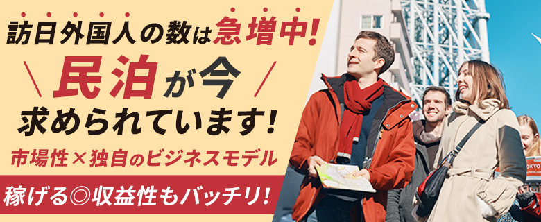 現在、インバウンド需要が高まり、民泊ビジネスの市場は拡大しています。