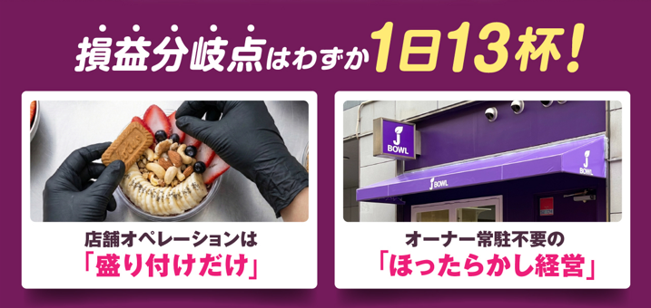 J BOWLは従来の飲食店では考えられない、1名体制で営業利益406万円を狙える革命的ビジネスモデルです。