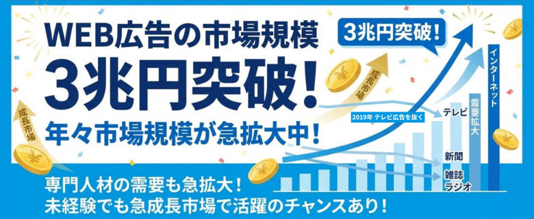 WEB広告は現在、3兆円超えのビッグマーケットで、年々規模が拡大中。