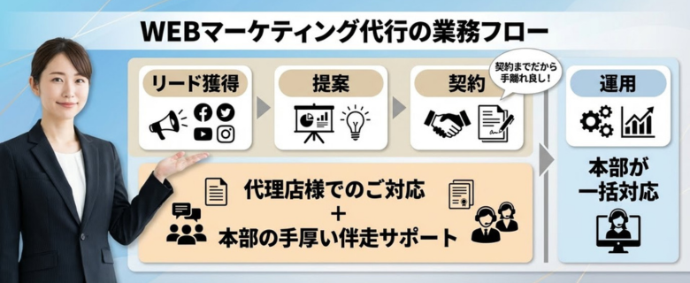 代理店様は、広告主(クライアント)様への提案~契約まででOK!