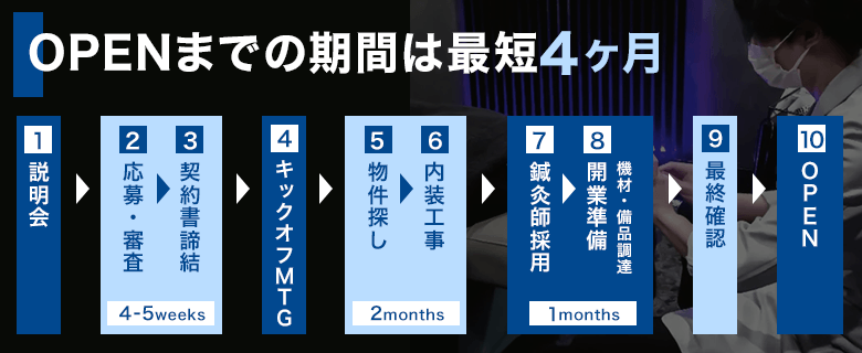物件探し、鍼灸師の採用・育成など、面倒な作業は全て本部で代行いたします!