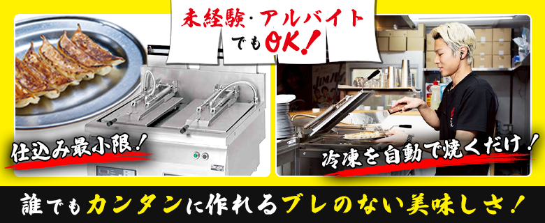 全自動餃子焼き機を使用し、未経験でも美味しい焼き上がりになります。