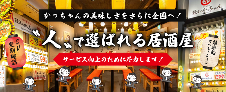 「肉汁製作所 餃子のかっちゃん」は、『人で選ばれる居酒屋へ』をコンセプトに、大阪で誕生しました。