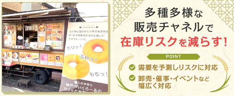 キッチンカー事業者・幼稚園・老人ホームなど、多様な卸売・イベント出店の実績があります。