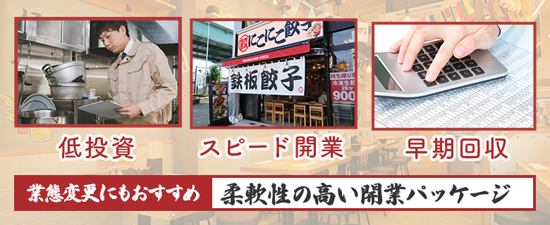 「名古屋羽根付き・にこにこ餃子」ならではの開業パッケージです。