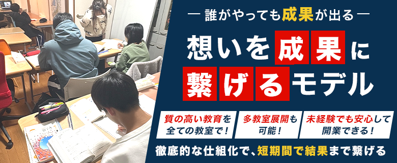 | 業種 | 教育・保育業 , 個別指導・学習塾 , 法人おすすめ , 多店舗展開しやすいフランチャイズ |