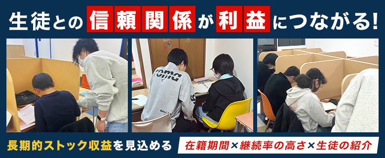 また従来の個別指導塾と比べて、格段に固定費が低く利益率が高いことが特徴です。