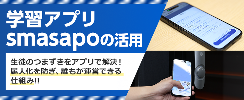 「三度の飯より自習室」では、学習アプリ「smasapo」を活用し、学習環境と学習支援を一体化した運営を行います!