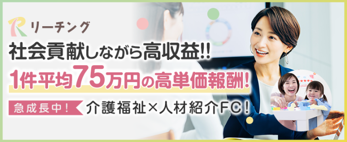 「リーチングFC」は、保育・介護特化型の人材紹介フランチャイズです。 単なる『人手』の紹介ではなく、『誰かの人生の選択肢』と、深刻な人材不足に悩む現場をつなぐ『架け橋』となります。 人材紹介は、小売や物販とは違い『心に残る仕事』。 紹介した一人のスタッフが入職し、施設の雰囲気が変わる感動を間近で感…